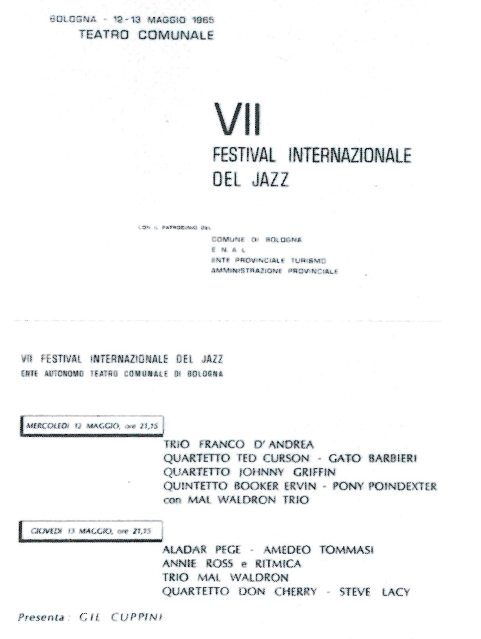 Anche il VII Festival (12 e 13 maggio 1965) offrì al pubblico che affollava il Teatro Comunale novità assolute di ascolto: accanto ai sax di Gato Barbieri e di Johnny Griffin si ascoltarono infatti il piano di Mal Waldron e il quartetto capitanato da Don Cherry e Steve Lacy, già in puro stile free.